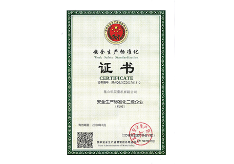 江蘇省安全生產標準化二級證書-2017