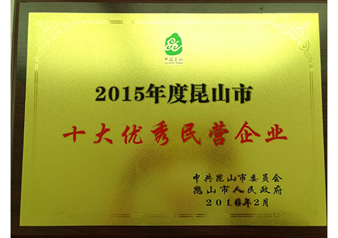 2015年度昆山市十大優(yōu)秀民營企業(yè)-2016